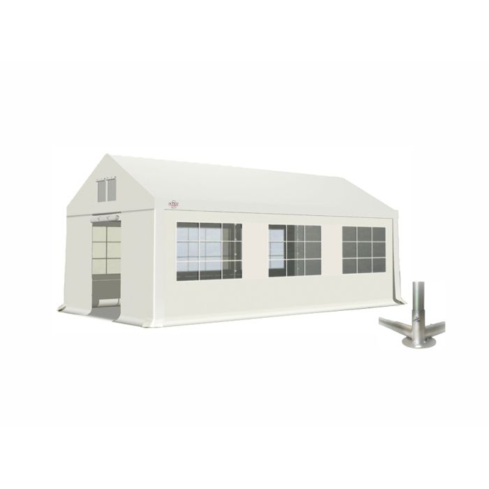 Met zijn gegalvaniseerde stalen frame en sterke PVC-doek van 1200N / 500 g/m² is deze tent bestand tegen intensief gebruik en vele weersomstandigheden.