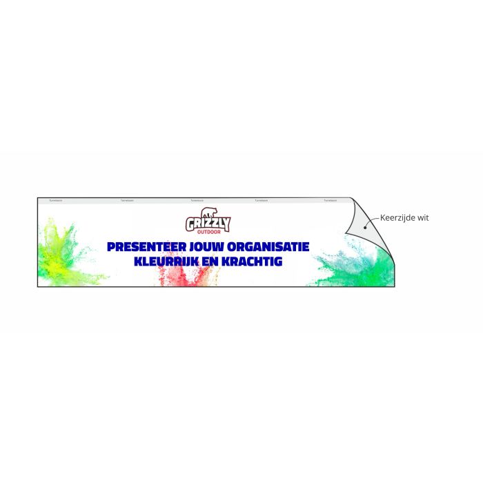 Je kunt de tent volledig laten bedrukken met de uitstraling, afbeeldingen, teksten én kleuren die bij jouw organisatie passen.