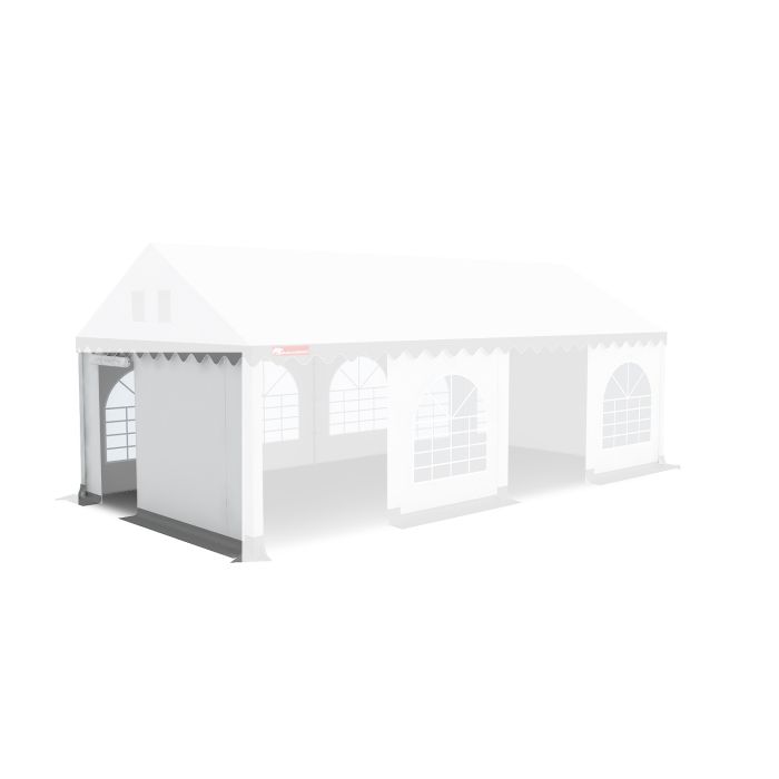 Omschrijving Kops paneel met ingang Wit-Grijs Grizzly Outdoor 4 meter